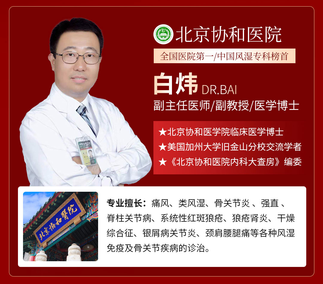 专家介绍:2011年毕业于清华大学北京协和医学院临床医学(八年制)专业,取得医学博士学位,毕业至今在北京协和医院风湿内科工作,具有扎实的内科和风湿病专科临床基础,熟知各种风湿性疾病的诊断与治疗,已成功救治数万患者。